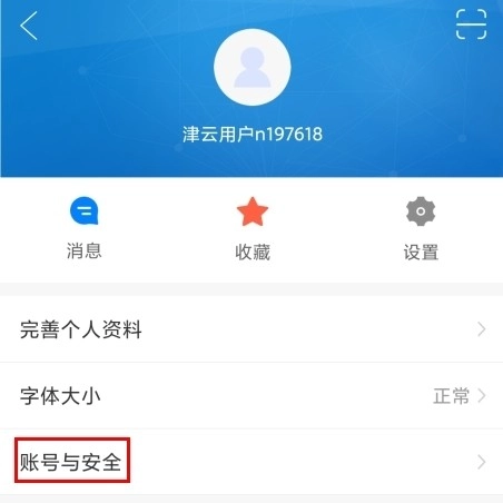 1、在个人页面中点击账号与安全按钮;