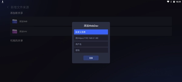 2、然后在打开的页面中选择【添加DAV】确认
