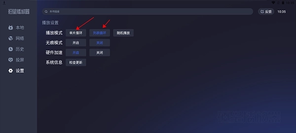 用户只需在电视版恒星播放器的设置页面里,开启单片循环或者列表循环功能就可以了。