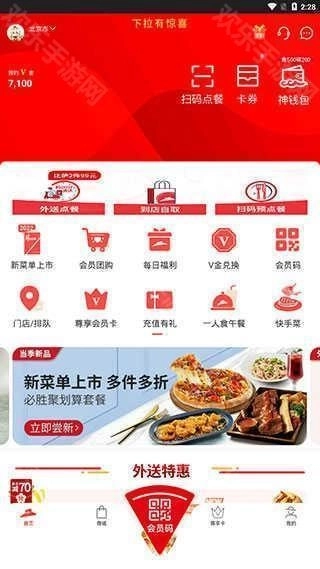 1、打开软件进入【首页】后,我们就能看到新菜单上市、会员团购、每日福利等一些常用的功能入口。