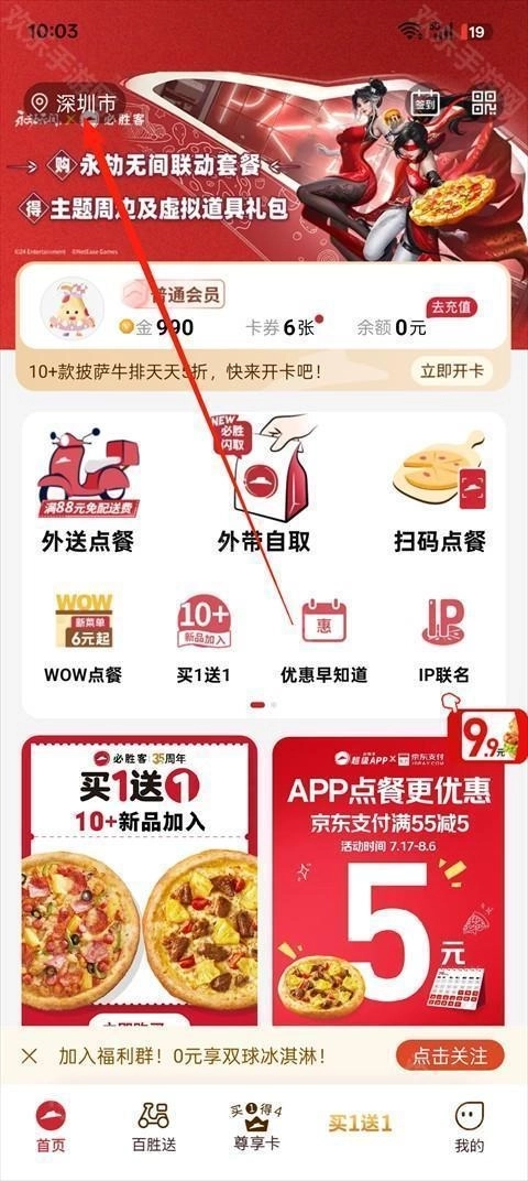 必胜客App怎么换餐厅