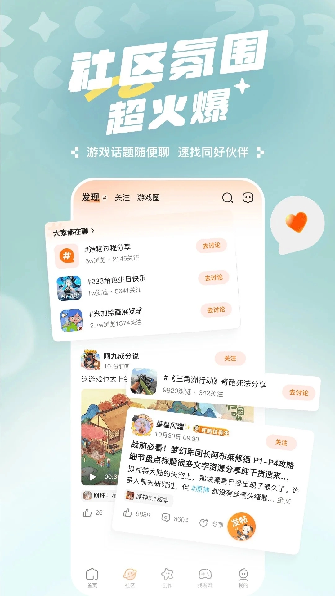 3、打造游戏交流社区,用户能够分享个人的游戏感悟、加入各类话题讨论,便捷地结识兴趣相投的伙伴