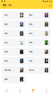1.书籍分类:支持通过按书籍种类分类的方式查看小说列表,涵盖玄幻、武侠、言情、都市、历史、科幻等十多个类型。