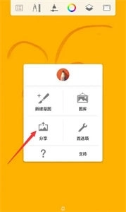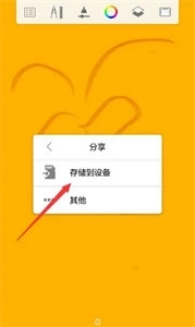 8、绘制完成后,点击界面右上角的目录图标,接着选择分享选项(可参考下图二),最后点击储存到设备即可。