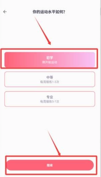 3、依据实际基础挑选初学者等级标签,确认无误后再次点击继续按钮,进入下一配置环节。