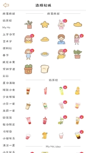 提供了各种可爱的贴纸,挑选自己喜欢的贴纸装饰手账