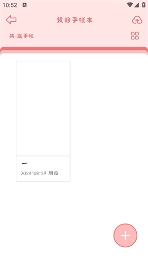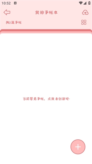 2、接下来就能查看自己的手账本了,点击“+”号按钮即可创建新的手账本。