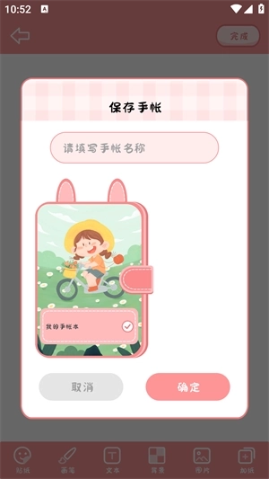 4、在编辑完成之后就可以输入手账名称进行保存。