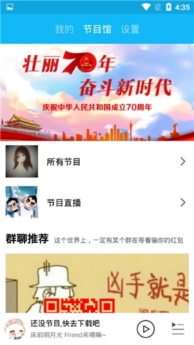 节目直播功能:用户能够在平台内实时收听直播节目,也可以选择在后台继续收听。