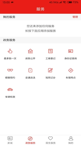 1、第一步我们先打开这款软件完成注册登录操作,接着点击界面正下方的民生服务选项。