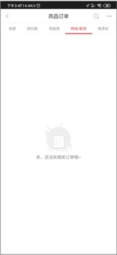 1、用户在购买相关商品后,若想查询物流详情,需进入“我的”界面,再点击“待收/取货”选项。