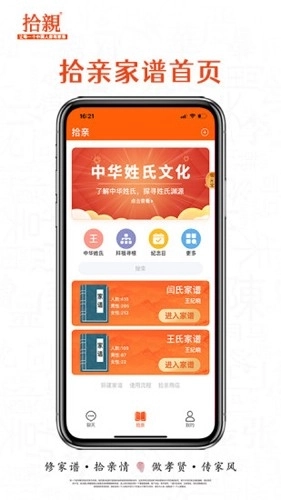 2、主要涵盖四大板块,分别是续家谱、拾亲情、传家风、敬亲人!