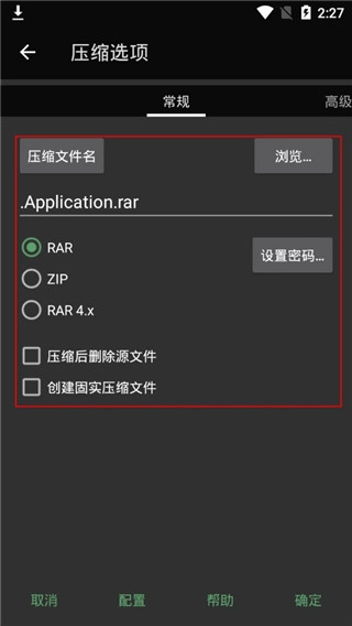 5、你可以选择压缩格式并设置密码,完成上述操作后点击确定,即可启动压缩流程。