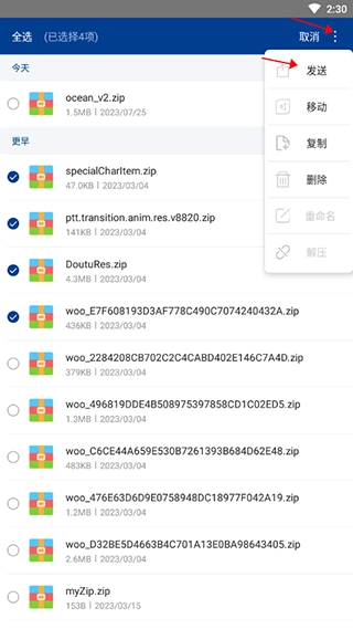3、压缩和解压缩后的文件轻松分享发送给朋友。