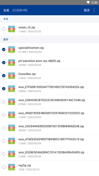 4、手机相册中的照片、视频可轻松选择打包压缩。