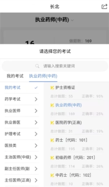 1、长北题库中还可以去找到自己想要去考的科目,不管是护士还是医师都是可以找到的