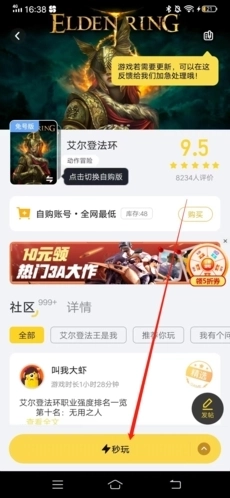 2、在游戏的页面中,点击下方的“秒玩”;