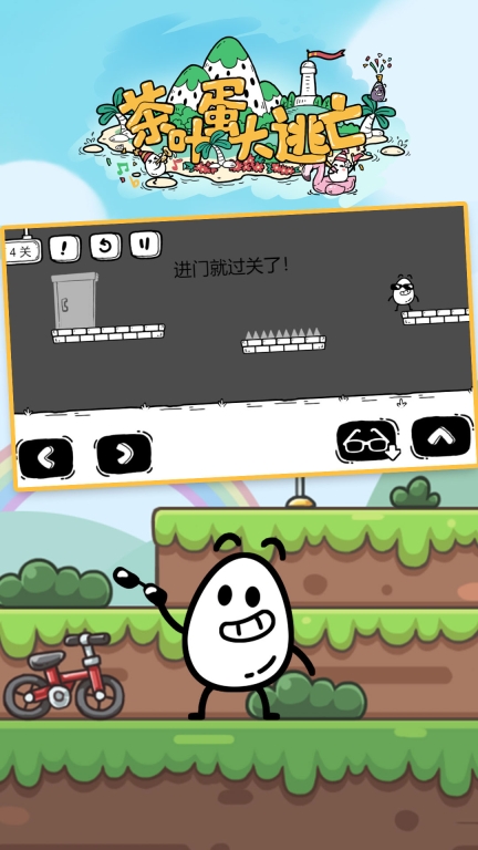 值得注意的是, 茶叶蛋大逃亡游戏 内关卡界面的语句提示非常关键,也许是一个文字,也许是一个动作,其中意味需要你仔细体会,例如进门就过关了、想办法跳上去、门被锁住了、要有礼貌哦以及门飞起来啦等,而且每往后一关,关卡的难度都会增加,越到后面会越难,不过玩家也不用担心,需要多多思考尝试,实在找不到方法还可以点击提示按钮来快速过关,具有挑战性的同时又可以随心所欲的轻松体验游戏,玩起来非常不错!喜欢烧脑解谜游戏的小伙伴千万不要错过,快来下载试试吧!
