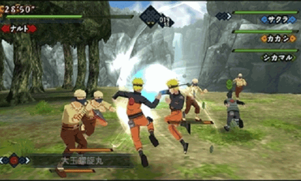 2、本次对《火影》的收录,最大特色在于加入了系列史上首次新增的内容。在原作里,玩家们想必都十分熟悉“四人一组”的小队要素,即编组攻击型、支持型、回复型等各类忍者,四人组成一个小队,去挑战护卫、追踪、讨伐等各类任务,凭借携手合作发挥出强大的战斗力。玩家们将以小队为单位,相互协作执行探查、战斗等各种任务。通过这样的设定,让玩家们体验到与之前系列1对1对战格斗截然不同的团队战斗乐趣。