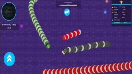 长按加速按键,凭借巧妙的走位,使蠕虫的身体被他人撞上,如此就能将他们吃掉啦。