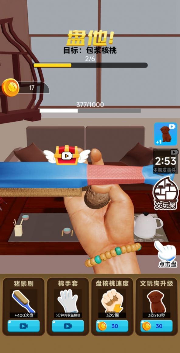 1、尝试把玩核桃的操作极为简便,仅需用手指轻轻一按就行。