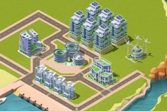 3.漂亮的游戏画风,各种各样的卡通图形,建造你的低碳小建筑或者是各种树木
