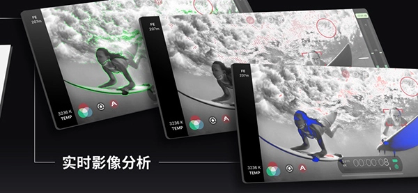 实时分析工具包涵盖斑马条纹、剪辑、假色以及对焦峰值等功能。