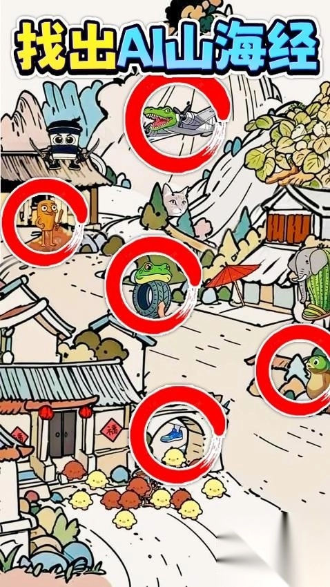 3、进入关卡后,根据头顶的目标,找齐十三个山海经即可过关。