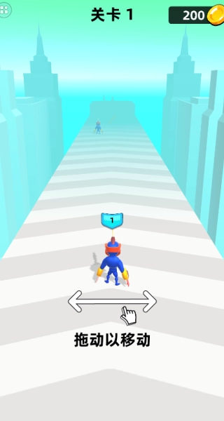 1、安装游戏开启游戏,进入第一关,左右移动角色,控制它前进冲刺。