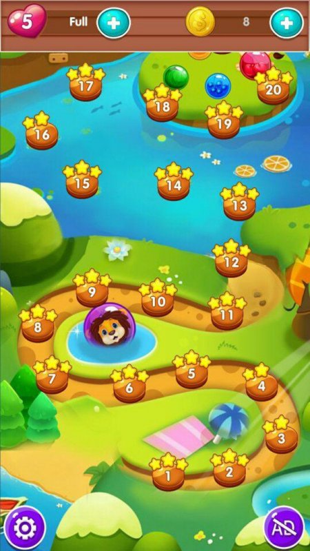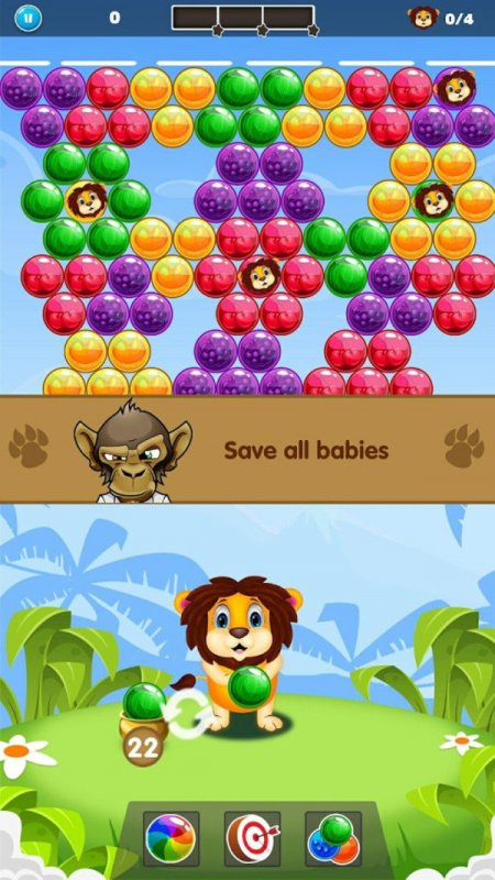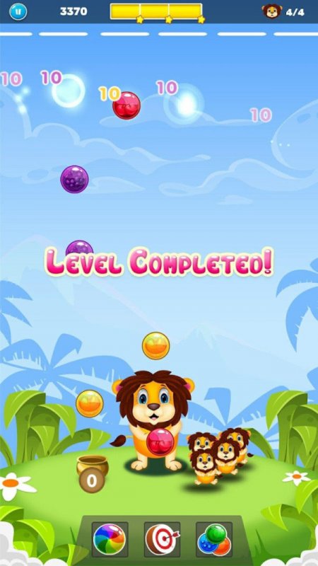 3、你需要成为一个巨大的泡沫射手击落这些气泡,并帮助母亲狮救她的宝宝狮子。