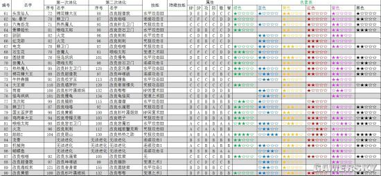 所以对于S的需求,你得查看初始需求。M则需关注哪种宠物进化1次能够成为目标宠,L要看哪种宠物进化2次才行。具体的可以参考我从贴吧找来的表格。需要说明的是,名字和编号可能不准确,尽量结合前后内容猜测一下(目前最新的只有wiki上的日文版,中文的就只有老版了)。