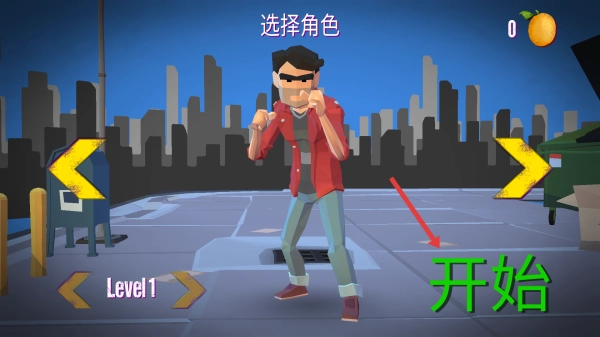 1、在角色选择界面,确认角色后点击开始,进入Level1街头战斗场景。