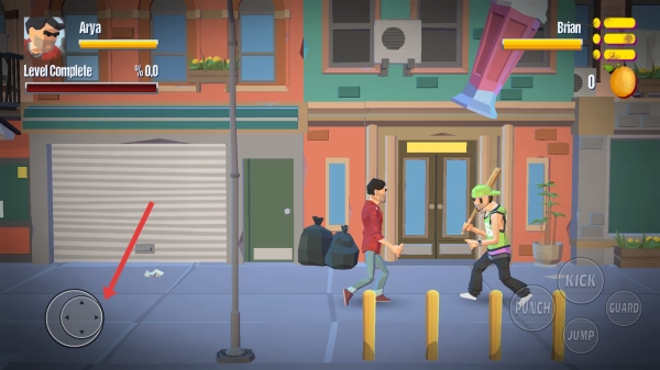 2、战斗时,用左侧摇杆控制角色移动,靠近敌人如持棒球棍的Brian,准备攻击。