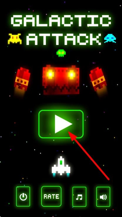 1、进入主界面后,我们点击箭头指向的绿色按钮,进入太空射击关卡选择玩法。
