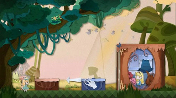 1、玩家通过拖拽纸片与场景展开互动,就像定格动画一般。