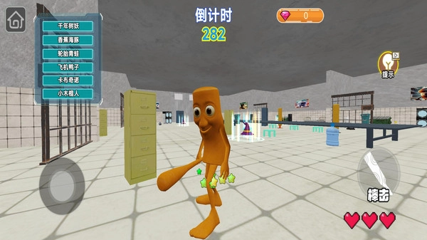 1.玩家可从左侧菜单选择伪装道具,每个道具有独特造型,帮助玩家巧妙隐藏身份不被发现。