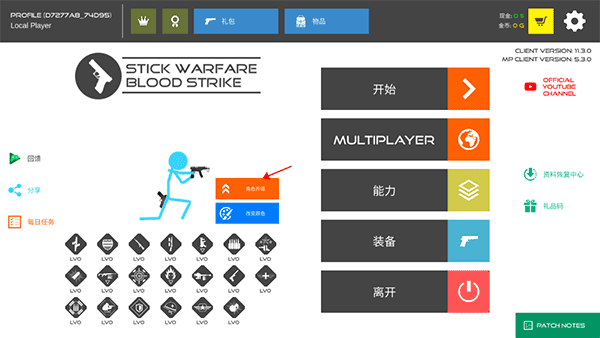 1. 当进入主界面后,能够发现角色下方的能力等级均为0 ,此时我们点击角色等级。
