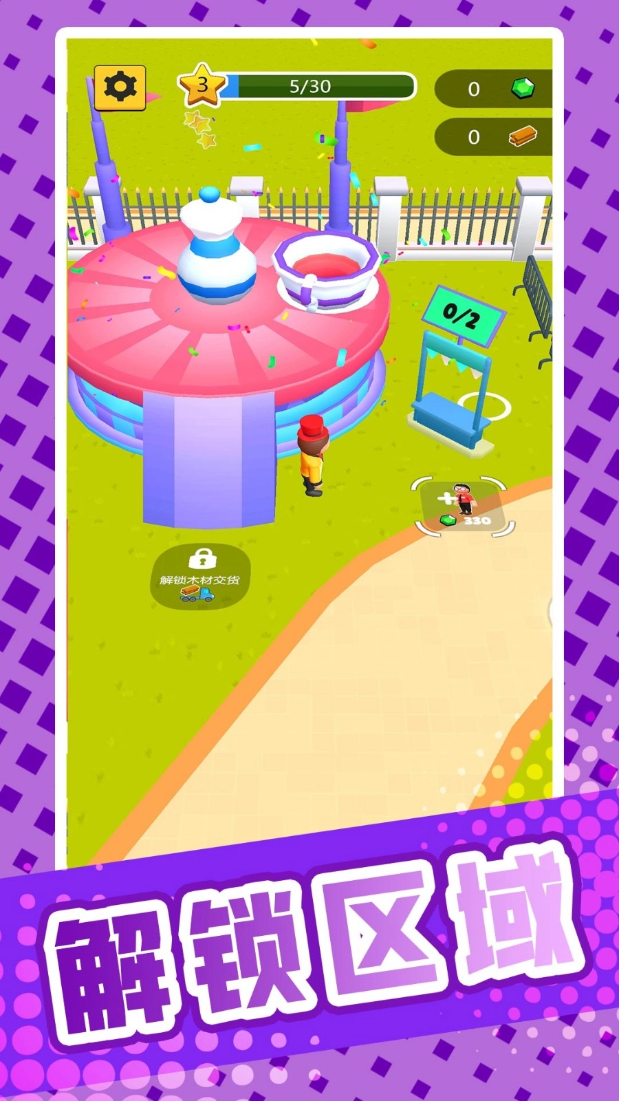1在游戏中,玩家能够化身为游乐园的经营者。首先,玩家需要选定一块区域,接着通过完成任务来获取一定数量的金币。利用这些金币,玩家可以解锁并购买各种游乐设施。当游乐设施足够丰富时,就能吸引更多游客前来玩耍,进而提升游乐园的收益。不仅如此,玩家还能够自由地解锁新区域,展开轻松的挑战。