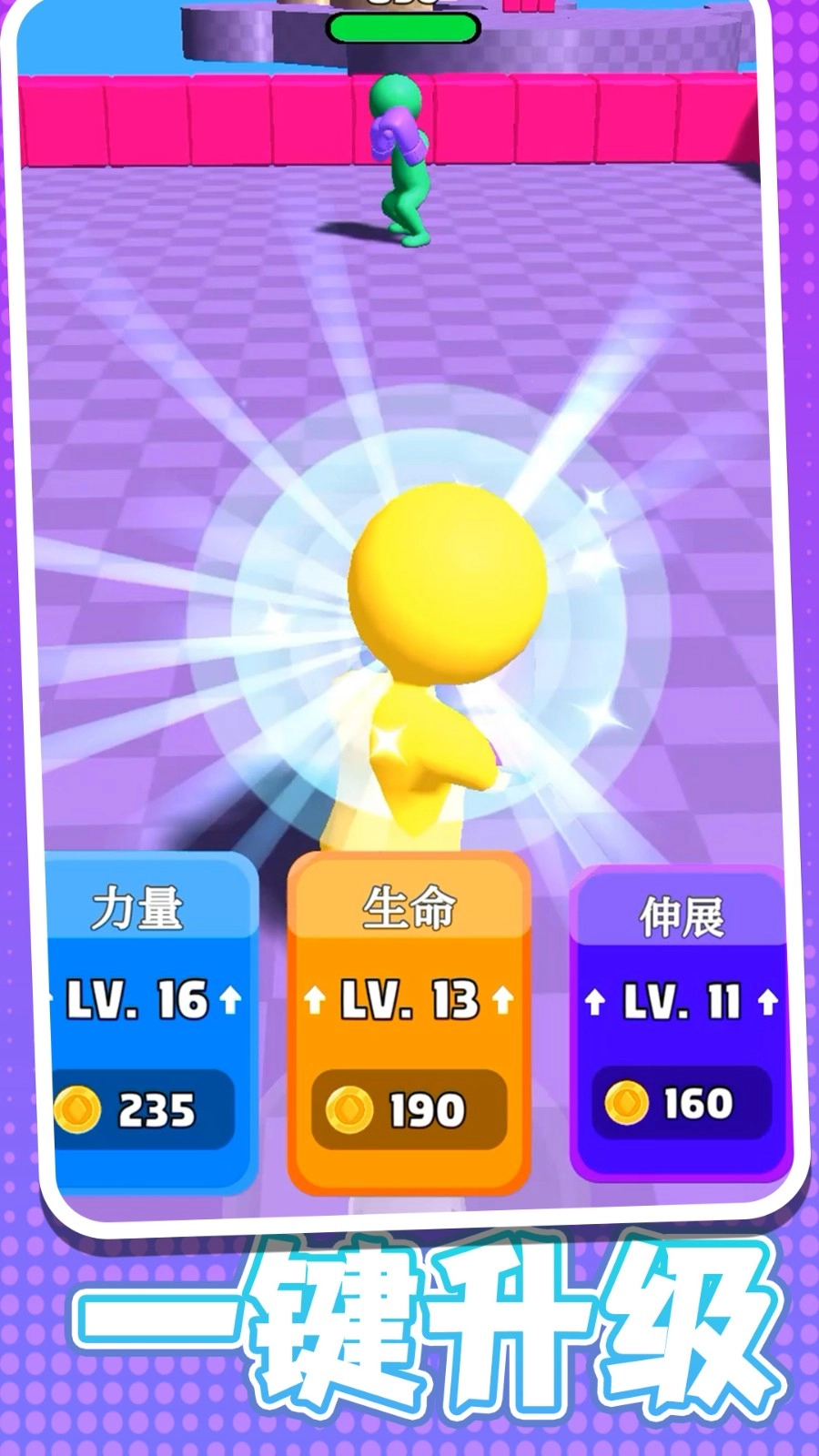 4、借助闯关来获取资源,进而能够提升橡皮人的能力,像速度、跳跃高度等方面,以此增强在闯关中的实力。