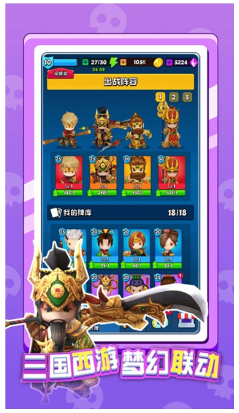 2、玩家可组建属于自己的武将卡牌队伍来闯关,顺利通过关卡便能获取丰厚游戏奖励。不仅如此,还能迅速完成升级,提升卡牌道具的游戏属性,如此一来,战斗会变得格外轻松,充满欢乐。