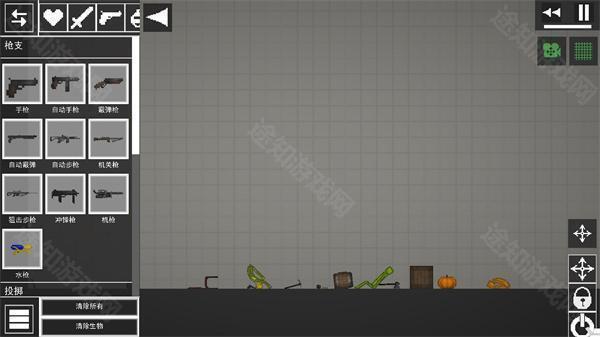 6、玩家还能够添加武器,只需点击枪械,武器就会立即出现在玩家手中,此时点击枪支即可开枪。