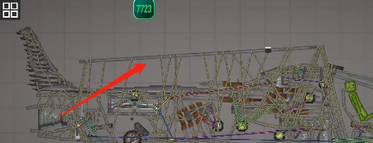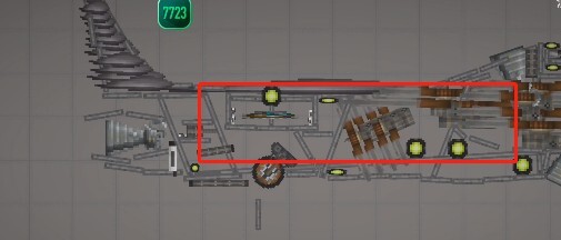 3、需留意,针对这种不稳定的结构,务必添加支柱,也就是机头中间的长铁块,将其设置为无重力且不碰撞状态,然后连接至机头外壳就行。