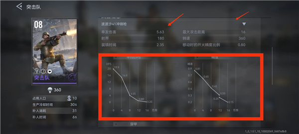 3、还有一个颇为重要的信息,那便是武器精度。突击兵移动开火精度为0.8 ,相比多数步兵的0.5要更高些。因此,在双方同时处于移动状态下进行对拼时,突击兵会占据优势。关于精度折线图所代表的意义,想必大家都明白,即距离越远伤害越低。而且,所有步兵的武器精度都是在距离为0时最为精确,伤害也达到最高。在游戏实际表现中,近距离挨着打很快就能将敌人击杀,可追杀逃跑的敌人时,却半天都难以打死。这里的数据在与敌人对抗时能发挥部分效果,毕竟不同兵卡武器的精确度衰减情况各不相同。要是能够把握最佳对敌数值,就能营造出我方攻击对方时相当精确,而对方攻击我方时却不太精确的局面,如此便可以拉开不同兵卡的输出差距,从而有了微操的空间。