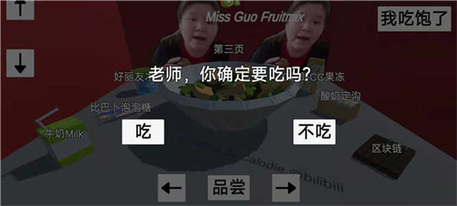 4、挑选完毕后,点击“品尝”按钮,以此决定是否食用,同时还能聆听熟悉的郭老师语音包哦!