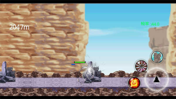 2、在游戏里,玩家可以控制人物进行跳跃,躲避前方来袭的石头,也可以击碎他们,不过会损失生命值。