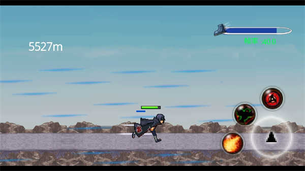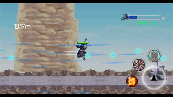 4、要是玩家释放了长时间持续的忍术,右上方就会出现相应的进度读条。玩家要留意,在忍术时间结束后,防止撞到石头。