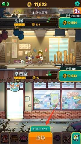 4、不断点击建造升级,打造更为宽敞优质的训练场地,提升学生的武艺水平,同时招募顶尖武术大师前来助力。