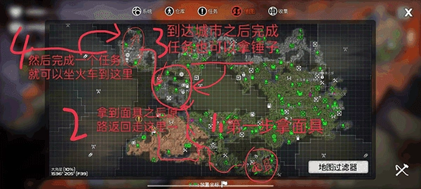 1. 首先前往雨林获取防毒面具,如此便能穿越毒气抵达上方的中枢区域。