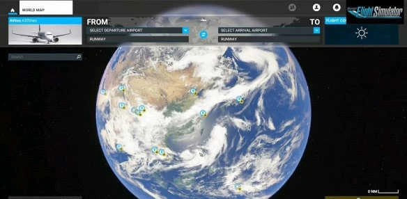 2、第一个“world map”指的是世界地图,在此你能够选择起飞和降落的机场以及停机位等。