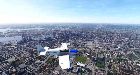 4. 于高空俯瞰游戏里的城市,持续探寻其中形形色色的独特场景,尽情领略飞行带来的乐趣。